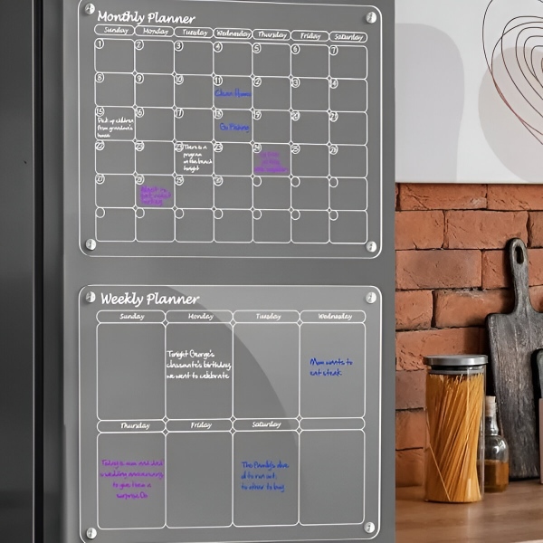 A karcsú, átlátszó akril dizájnja nem csak modern színt kölcsönöz konyhájának, de hatékony módot kínál a napi tevékenységek irányítására is.