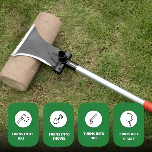 🛠️ 4 az 1-ben kialakítás: Fejsze, ásó, kapa és sarló egyben!