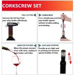 Ez a 4 az 1-ben készlet tartalmaz egy légpumpás nyitót, fóliavágót, levegőztető kiöntőt és vákuumdugót a tökéletes borélményhez.