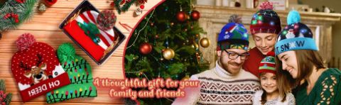XBEANIE egy Karácsonyi szarvas és hóemberek tervezési mintájával és led fényekkel, megfelel az ünnep igényeinek és a gyönyörűen divatos.