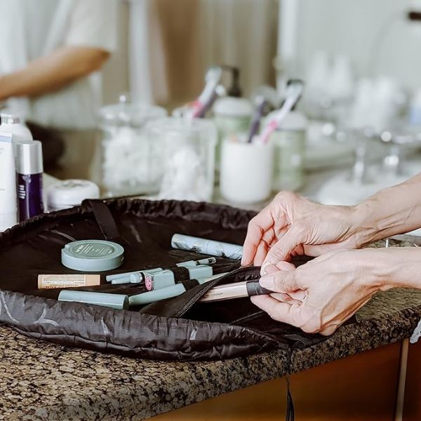 Maradjon ragyogóan szervezett a GLAMSY-val! A táskánk innovatív zsinóros kialakítása kitágul, így könnyen hozzáférhetsz minden szépségápolási kellékhez. Mondjon búcsút a sminkbaleseteknek, és üdvözölje a könnyed, kompakt szervezést!