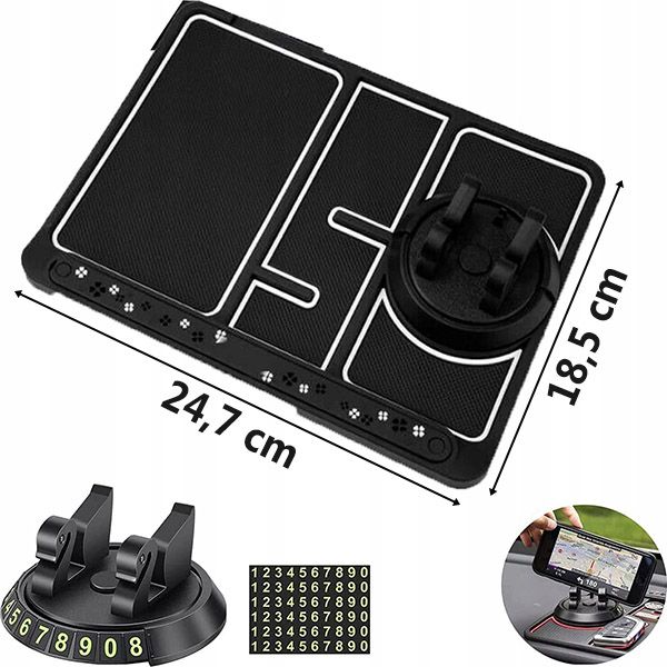 📏 Univerzális kompatibilitás: A 24,7 x 18,5 cm-es méretével ez a szőnyeg zökkenőmentesen illeszkedik bármely autó műszerfalára, biztosítva a szoros és biztonságos elhelyezést.