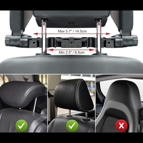 ✔️ Válassza ki a megfelelő gumialátétet, amely illeszkedik az autóülés fejtámla rúdjaihoz.