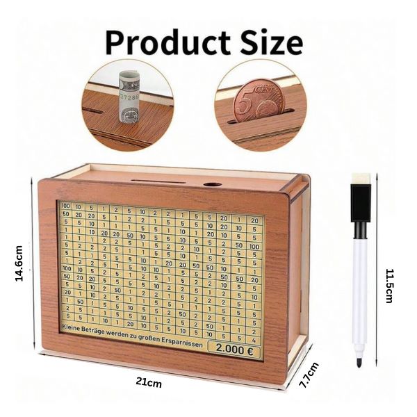 1 x COINSAVE fából készült pénzmegtakarítási doboz