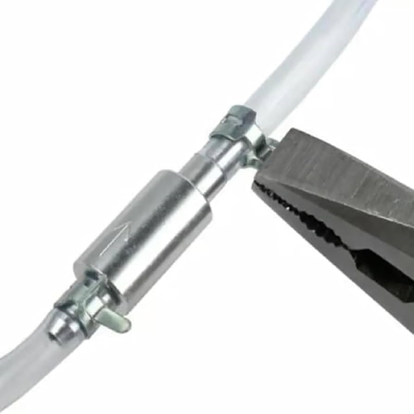 A tömlő csatlakoztatása a motorkerékpár fékrendszeréhez gyerekjáték a mellékelt rögzítőkapcsokkal. Ez a gyors beállítás lehetővé teszi, hogy azonnal megkezdje a fékfolyadék légtelenítési folyamatát.