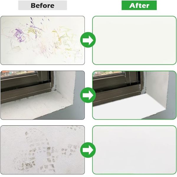 A ROLLPAINT hatékonyan távolítja el a foltokat, cipőnyomokat és a gyerekek firkáit a falon.