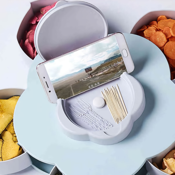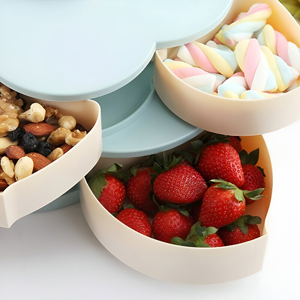 🌟 Csavarja el a fedelet, hogy felfedje a rekeszeket, amelyek tökéletesek a sütik, gyümölcsök és egyéb ételek számára.