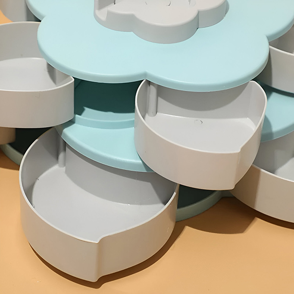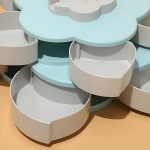 A virágszerűen nyíló, kétrétegű tároló megkönnyíti a konyhai rendszerezést és helytakarékosságot biztosít.