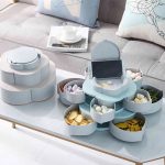 A több rekesz lehetővé tesz különféle csemege tárolását, a cukorkáktól kezdve a süteményeken, aszalt gyümölcsökön, olajbogyókon, sajtdarabokon és egyéb rágcsálnivalókon át.