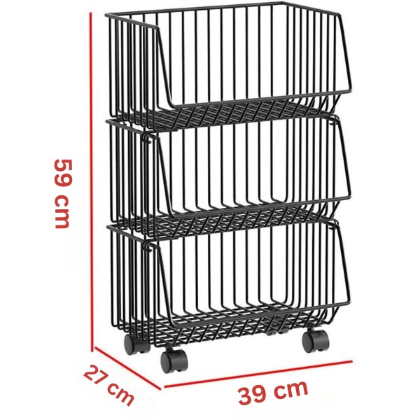 Tartsa rendezetten és elérhető közelségben a zöldségeket, gyümölcsöket és éléskamrai cikkeket. A három állítható kosárral könnyen testre szabhatja konyhai tárolóhelyét, miközben a rendezett megjelenés is megmarad.
