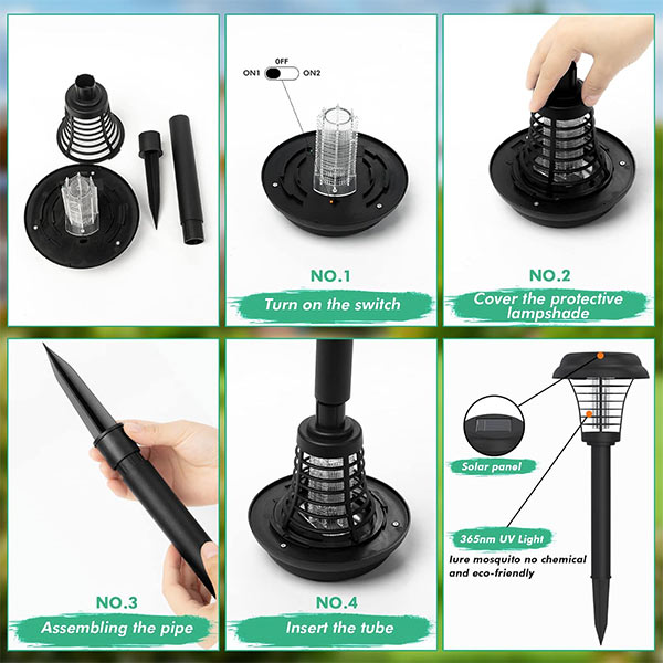 Napelemes lámpánkat egyszerű felállítani és használni – nincs gond, nincs szükség további áramforrásra. Élvezze az azonnali védelmet a szúnyogoktól!