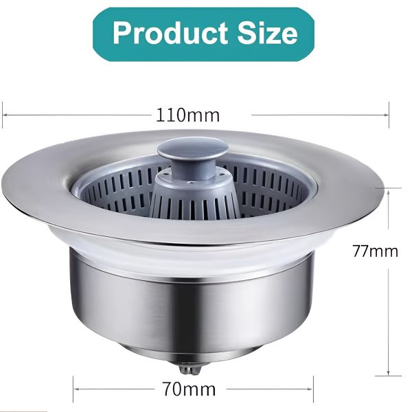 A kiváló minőségű rozsdamentes acélból és ABS-ből készült mosogató lefolyószűrő tartós, hőálló és rozsdamentes, így könnyen használható és karbantartható.