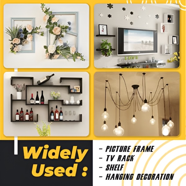 Tökéletes különféle lakásdekorációs igényekhez, például képkeretek, lámpák, függönyök, órák, növények és egyéb tárgyak gipszkartonra vagy gipszlapra történő felakasztásához.