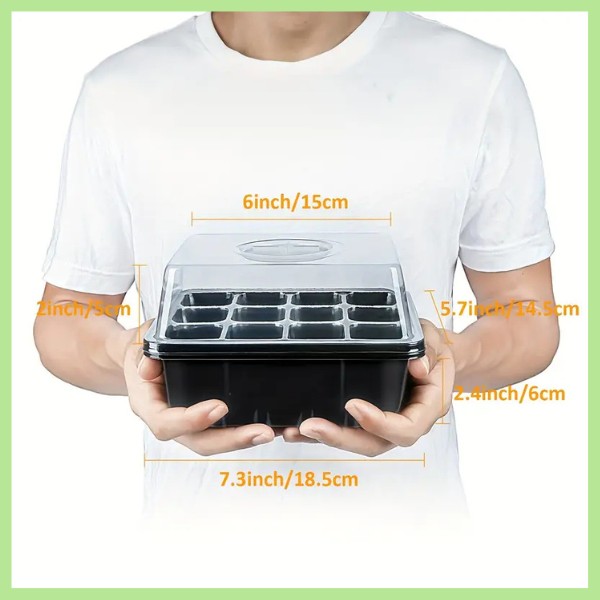 Minden tálcának 12 lyuka van, és egy fedéllel rendelkezik, amely szellőzőkapcsolóval van ellátva. Most szabályozhatja a páratartalom szintjét, és biztosíthatja a legjobb környezetet a palántáinak. Egészséges, jól szellőző gyökereket nevelhet az erősebb növények érdekében.