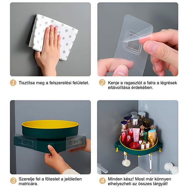 Alakítson át bármilyen sarkot takaros tárolómegoldássá anélkül, hogy extra helyet foglalna! Tökéletes palackok, tégelyek, fűszercsomagok, kozmetikumok, piperecikkek és sok más tárolására.