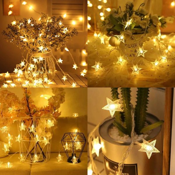 A LED-es csillagfüzérek könnyen felhelyezhetők vagy felakaszthatók falakra, ablakokra, ajtókra, padlókra, fákra, zongorákra, kertekre stb. Használhatja őket a kedvenc formája és stílusa szerinti díszítéshez. Nagyszerű, hogy egy kis nyugtató színt adjon a gyerek vagy tinédzser hálószobának, vagy akár egy főiskolai bentlakásnak. Emellett felakaszthatja őket egy veranda, ajtónyílás, ablak, fejtámla vagy hiúság fölé – vagy használhatja őket fali dekorációként.