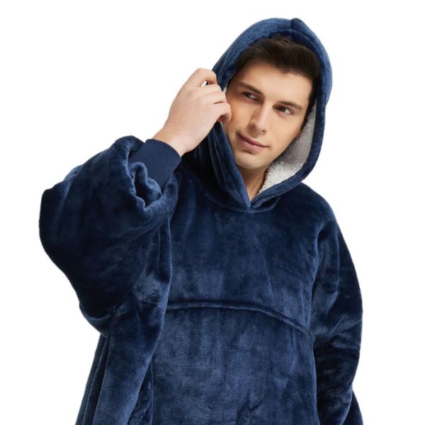 A térdig érő HOODZIE, kapucnis pulcsi és takaró egyben, kellemesen melegít tévénézés, olvasás vagy délutáni pihenés közben.