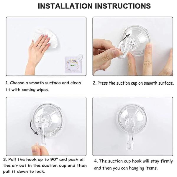 Az átlátszó tapadókorongos horgok nagy szilárdságú anyagot és csúcstechnológiás zárási technológiát használnak, erős és tartós, környezetbarát és esztétikus, tökéletesen illeszkedik bármilyen dekorációhoz, és nem sárgul vagy csökkenti a tapadást az idő múlásával.