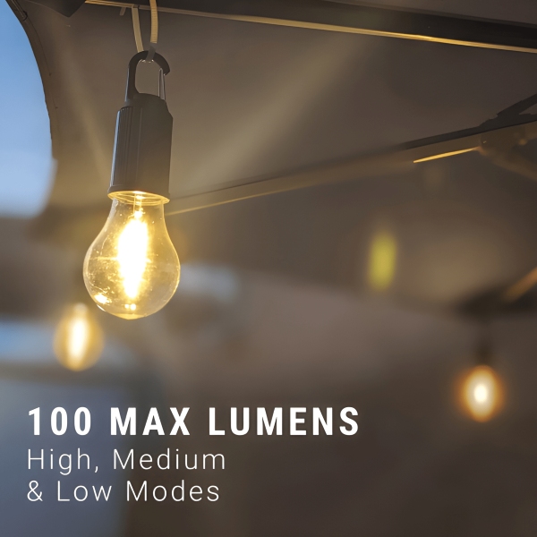 🌟 3 fényerősségi szint – lágy környezeti fény a hosszú nyári éjszakákhoz, vagy erős fény a szabadtéri vacsorákhoz és a késő éjszakai beszélgetésekhez.