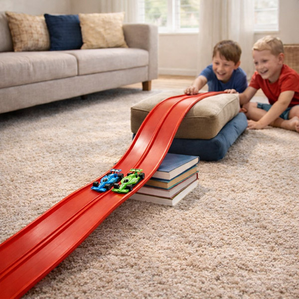 A gyerekek mindennapi tárgyak segítségével formálhatják a pályát, ugrásokat, alagutakat és hurkokat hozva létre, ami a fantáziát és a problémamegoldó készséget ösztönzi az ismétlődő játék helyett. Órákon át leköti őket képernyők nélkül.