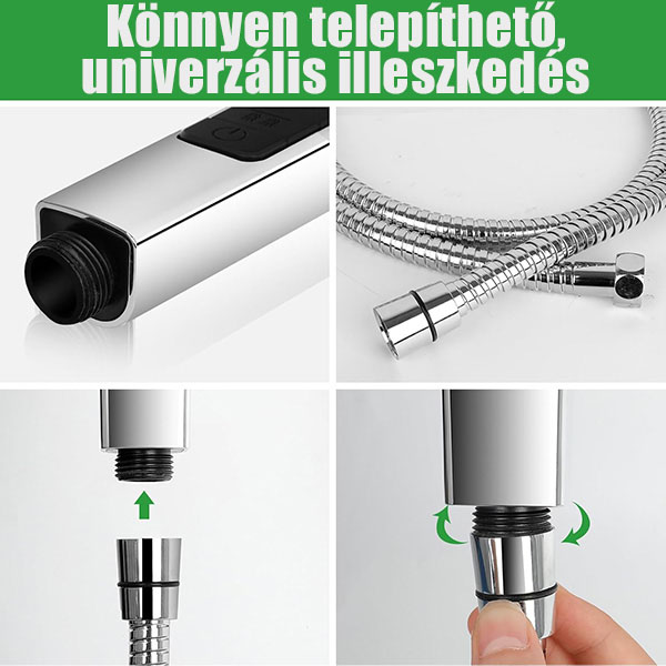 Kompatibilitás: Univerzális illeszkedés minden szabványos zuhanytömlőhöz